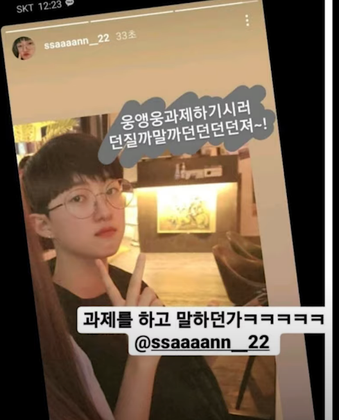 안산 선수는 과거 인스타그램에 웅앵웅과 오조오억이라는 표현을 썼습니다.