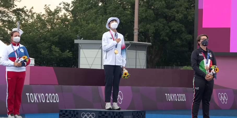 도쿄올림픽에서 양궁 여자 국가대표 안산 선수가 개인전에서 금메달을 따며