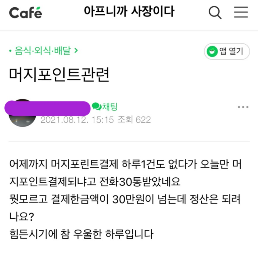 영세 업주는 보험을 들지 않았을 가능성도 있기 때문에 머지로 결제한 금액을 정산 받지 못할 확률도 있습니다.