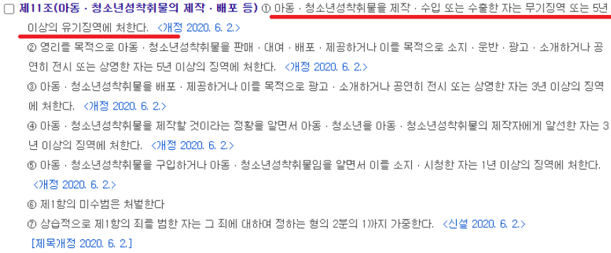 제 11조를 보면 제작한자는 5년 이상의 유기징역에 처한다고 명시되어 있습니다. 유기징역은 무기징역에 반대되는 형량이 있는 징역이라는 말입니다. 키드모과 과연 실형을 선고받아 징역을 살게될지 지켜봐야 할 것 같습니다.